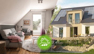 - Energieversorgung: Der niedrige Energiebedarf wird über regenerative Quellen zur Strom- und Wärmeproduktion gedeckt. Eine Wärmepumpe und eine Photovoltaikanlage bieten optimale Voraussetzungen, um das Haus klimafreundlich zu betreiben. Die Warmwasserbereitung kann eine thermische Solaranlage übernehmen.